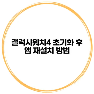아래의 표를 통해 갤럭시워치4 초기화 후 앱 재설치 과정의 핵심 포인트를 요약했어요.