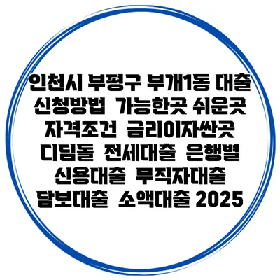 대출은 많은 이들이 필요로 하는 금융 서비스 중 하나에요. 특히 인천시 부평구 부개1동에서 대출을 신청하고자 하는 분들에게 필요한 정보와 방법을 자세히 정리해볼게요. 대출은 쉽지 않은 절차일 수 있지만, 올바른 정보와 준비가 있다면 성공적으로 대출을 받을 수 있어요.