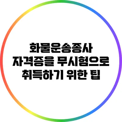 무시험으로 화물운송종사 자격증을 취득하기 위해서는 특정 조건을 갖추어야 해요. 아래는 주요 조건이에요.
